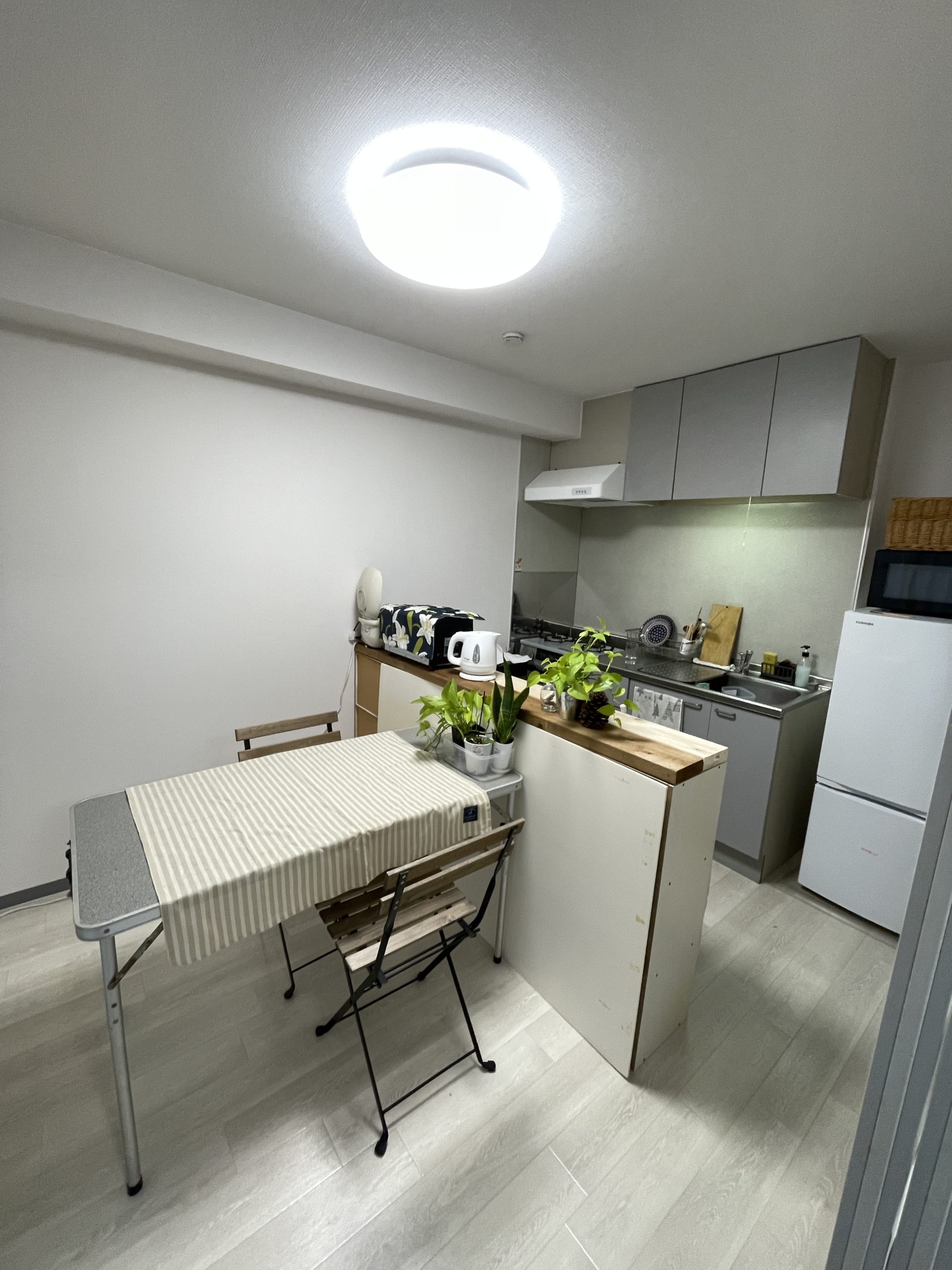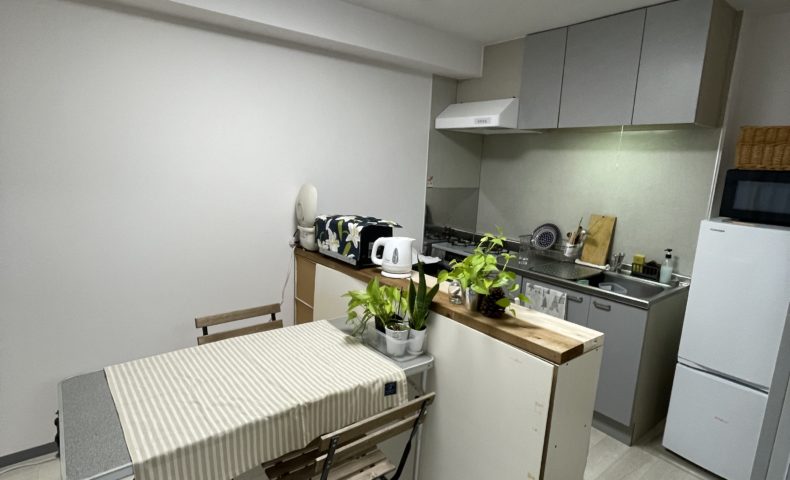 特にキッチンは有り合わせの家具でカウンターを作ったよ。